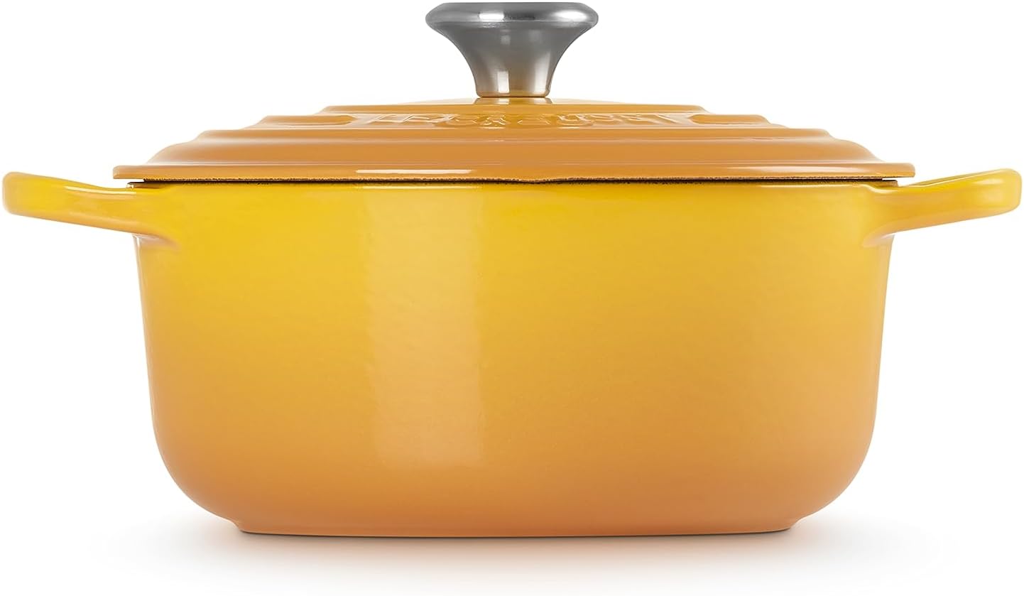 Кастрюля Le Creuset – незаменимая классика на кухне. Она изготовлена из теплоемкого чугуна, который быстро прогревается по всему объему и долго сохраняет тепло. На чугун нанесена непроницаемая для воздействия пищевых кислот эмаль. Поэтому в кастрюле можно не только отваривать и тушить, но и мариновать и хранить сырые продукты. Для приготовления достаточно слабого или среднего нагрева – он нужен только для поддержания изначально заданной температуры. Дно и боковые стенки, а также крышка прогреваются равномерно, поэтому блюдо даже без перемешивания достигает одинаковой степени готовности и не подгорает. Крышка имеет куполообразную конструкцию и устанавливается по внутреннему ободу кастрюли, что обеспечивает попадание капель влаги с крышки обратно в посуду. Ручка на крышке выполнена из нержавеющей стали и выдерживает температуру до 260°С.